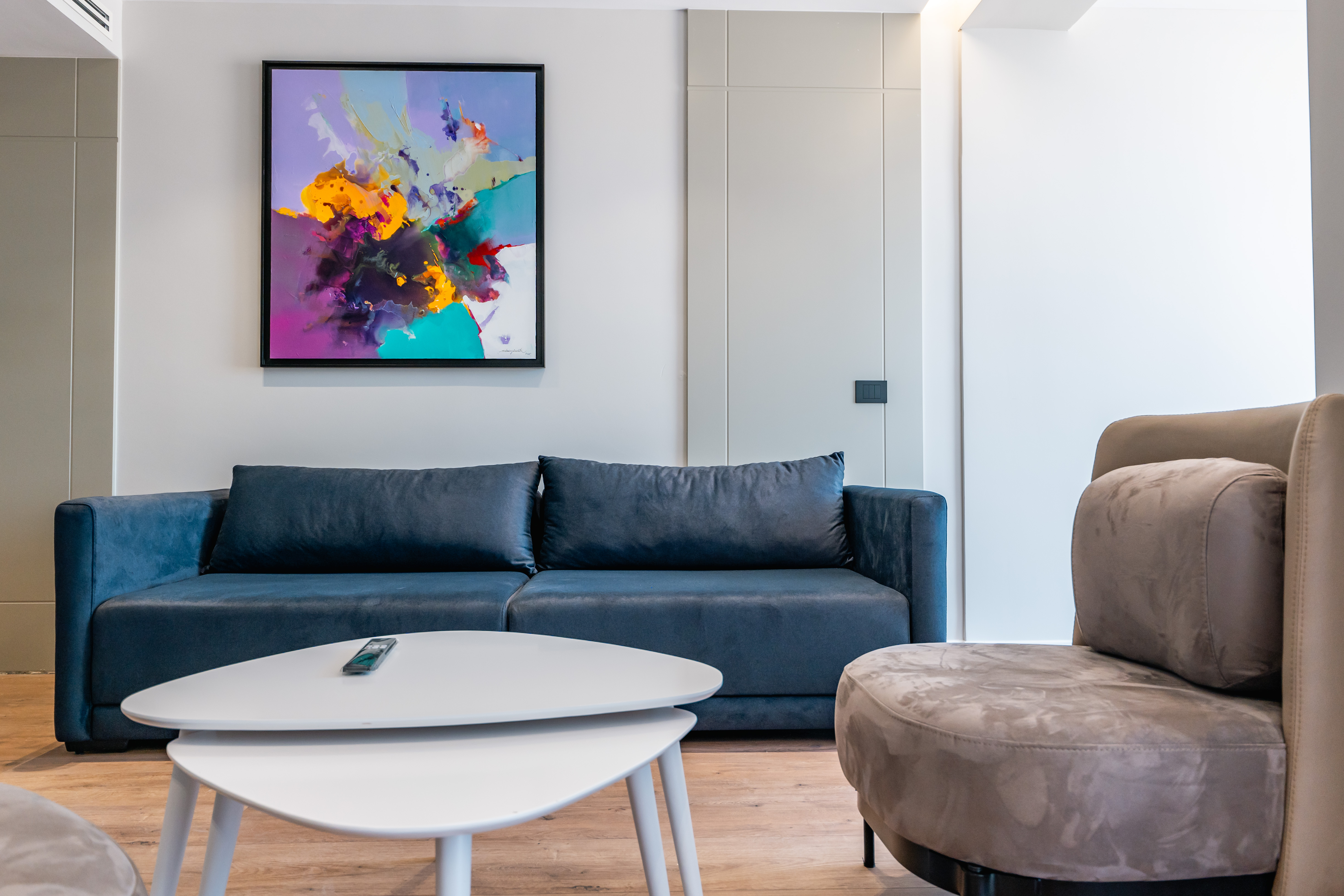 Enjoy a stylish stay in this comfortable apartment featuring a cozy living room with a sofa bed and a separate bedroom with a double bed. The private bathroom includes a shower, bidet, and fresh towels. Relax on the balcony with city views, and enjoy amenities like air conditioning, a flat-screen TV, and a spacious wardrobe.